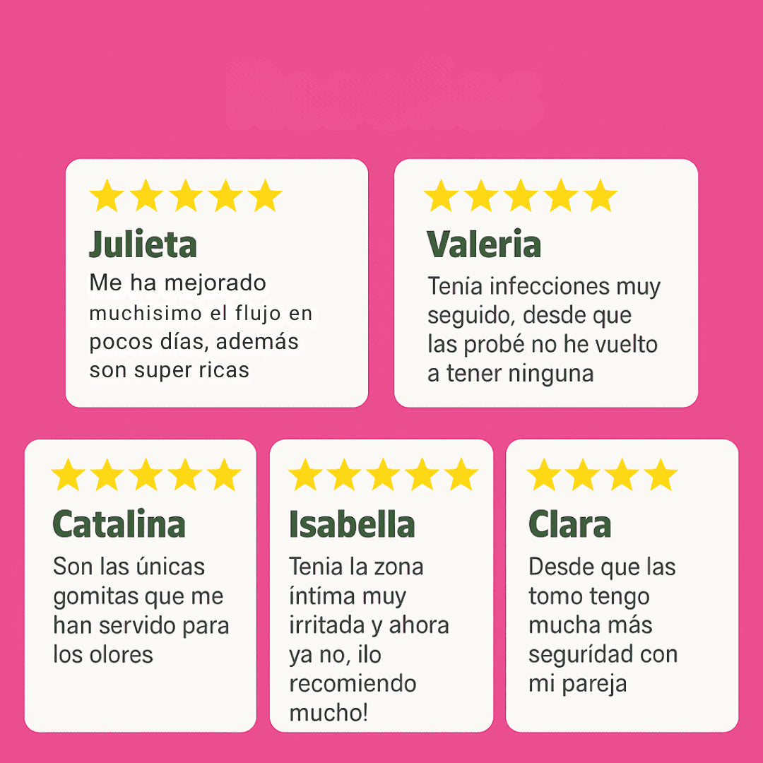 Cada gomita contiene una mezcla precisa de ingredientes naturales que equilibran tu flora vaginal y cuidan tu salud femenina